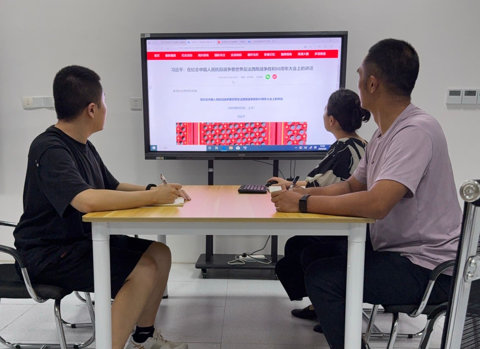 老师们学习了《习近平:在纪念中国人民抗日战争暨世界反法西斯战争胜利80周年大会上的讲话》、《习近平:弘扬伟大抗战精神,向着中华民族伟大复兴的光辉彼岸奋勇前进》和《正义必胜 和平必胜 人民必胜——写在中国人民抗日战争暨世界反法西斯战争胜利80周年之际》(《人民日报》9月2日)等材料。