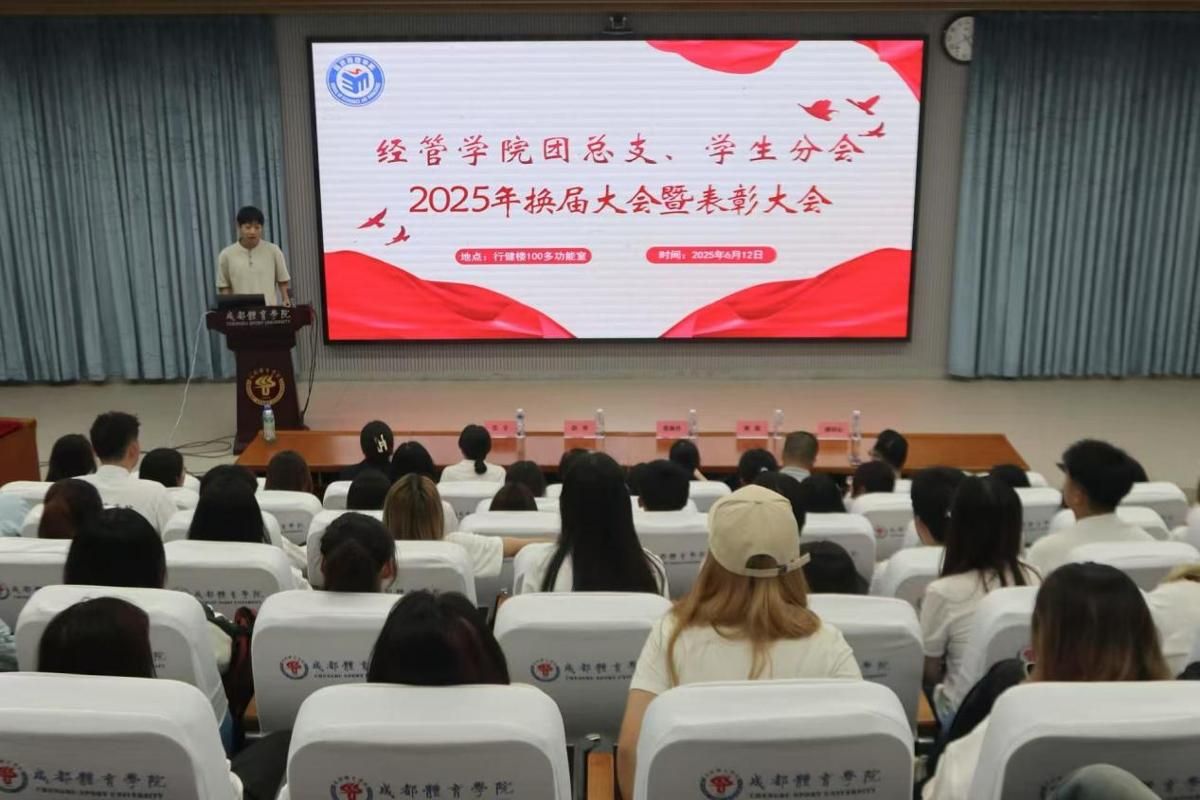 6月12日下午,经济管理学院2024-2025学年团总支、学生分会换届暨表彰大会在行健楼一楼多功能室隆重举行。本次会议旨在总结两个学生组织过去一年的工作成果,完成新老学生干部交接,并对表现突出的成员予以表彰。学院党委书记张林玲,学生党支部书记、体育管理系学管办主任吴宇,团总支书记、体育经济系学管办副主任胡琨、旅游管理系学管办主任彭琴,及体育管理系辅导员潘同心出席会议。
