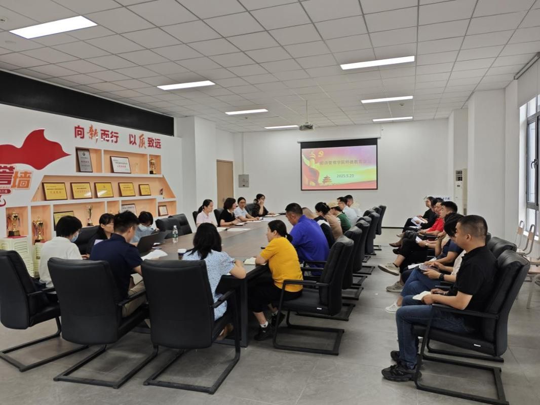 为深入学习贯彻习近平新时代中国特色社会主义思想,坚决落实师德师风第一标准,大力弘扬教育家精神,加强新形势下师德师风建设,培养造就新时代高水平教师队伍,5月23日上午,经济管理学院全体教职工在运动休闲馆328进行了师德教育集中学习,本次学习由学院党委书记张林玲主持。