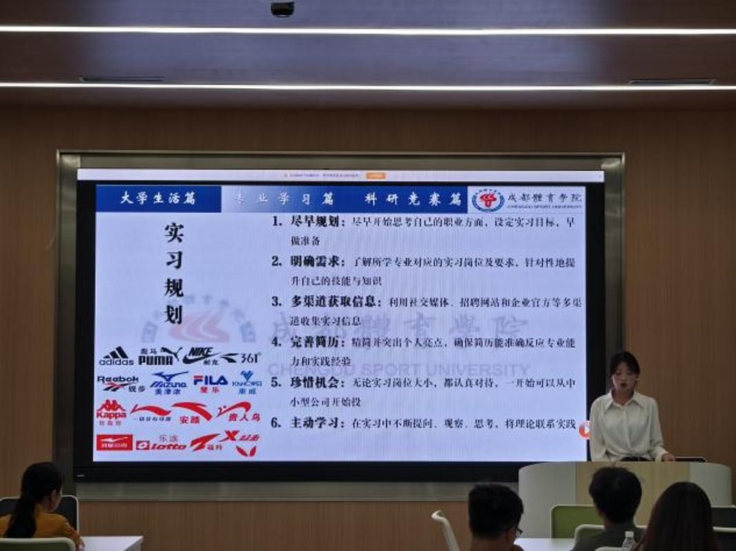 活动中,师生共同听取了三位优秀毕业生的先进事迹。2022级体育人文社会学专业硕士研究生杨浩讲述了其通过国家公务员考试,投身移民管理检查工作的心路历程,他表示自己将在扎根基层中践行青春使命。2021级体育经济与管理1班本科生陶秀娟分享了她在学生会的工作经历,参加各类竞赛和社会实践活动的经历以及对学业的详细规划,总结出大学阶段要勇于尝试,在探索中明晰人生方向。2021级旅游管理1班本科生陈章齐回顾了他的创业实践历程,讲述了从创办文化传媒公司遇到困难到最终实现公司盈利的蝶变。他谈到,在追逐梦想的过程中要放下对结果的焦虑,专注过程和细节,只要以热爱为核心就能浇灌出梦想之花。三位毕业生在分享过程中都对学校和学院的悉心培养,对老师们的谆谆教诲表达了真切的感激之情。活动最后,张林玲书记对三位毕业生在校期间的表现给予了充分肯定,号召全体在校学生向优秀毕业生学习,希望大家常怀感恩之心和家国情怀,为学校发展和国家建设做出贡献。