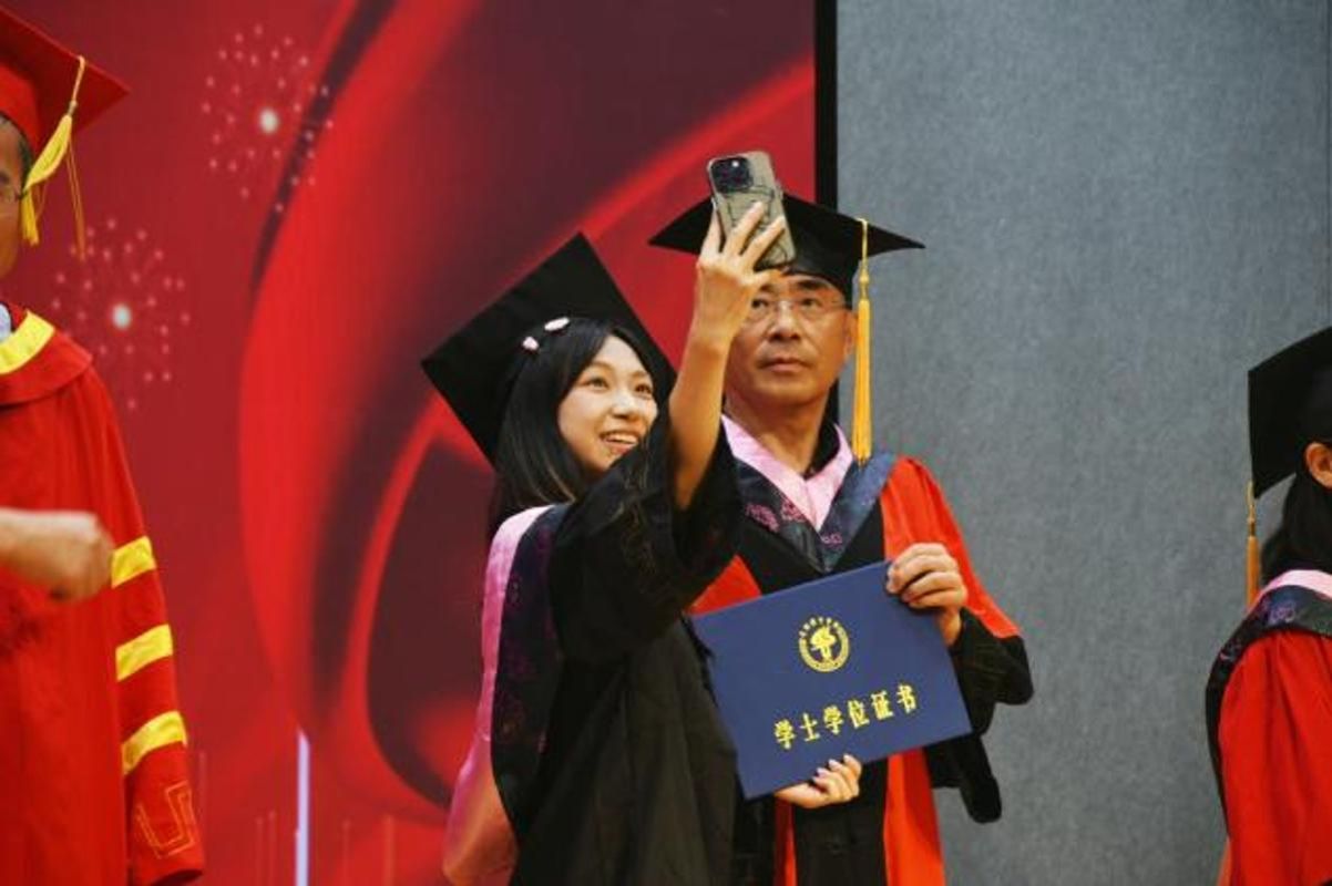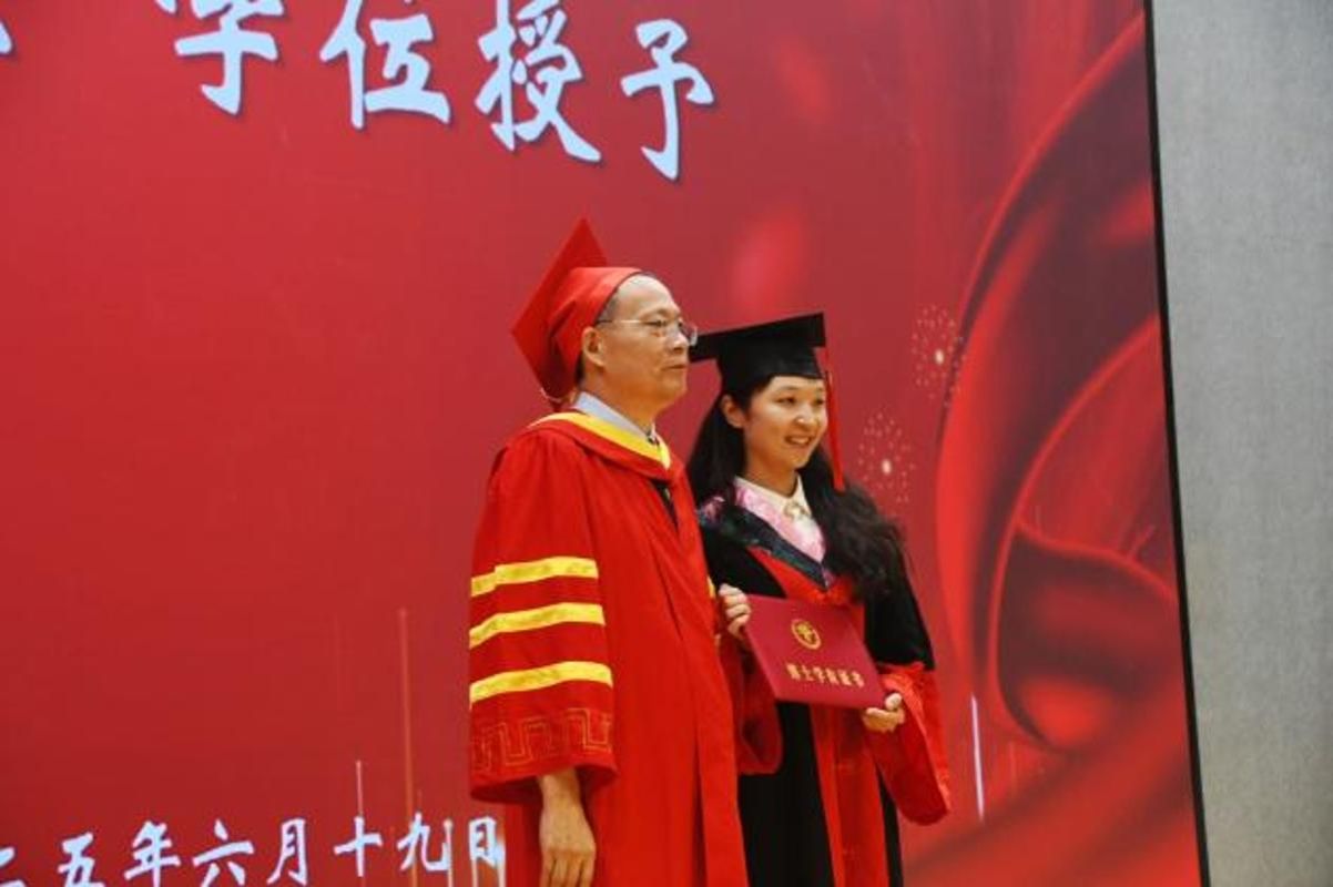 最后,张林玲书记宣读了2025届毕业生的授位决定,毕业生们身着学位服,依次走上主席台,接受老师们拨穗正冠,颁发学位证书,并合影留念。