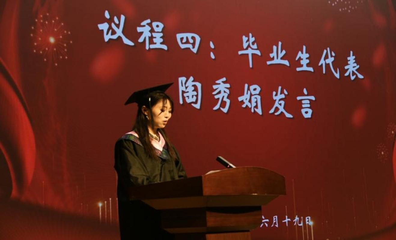 随后,学院教师代表袁梦莎,研究生毕业生代表管寅淏,本科毕业生代表陶秀娟分别作了发言。