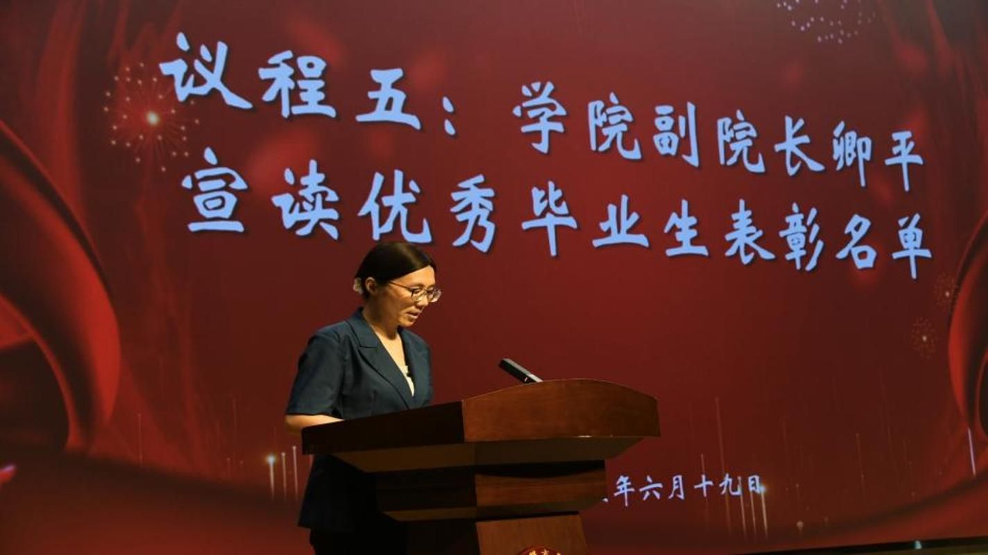 接下来,学院副院长卿平宣读了2025届优秀毕业生表彰名单,对获得表彰的同学表示祝贺,并鼓励全体毕业生在未来的学习和工作中不断追求卓越。