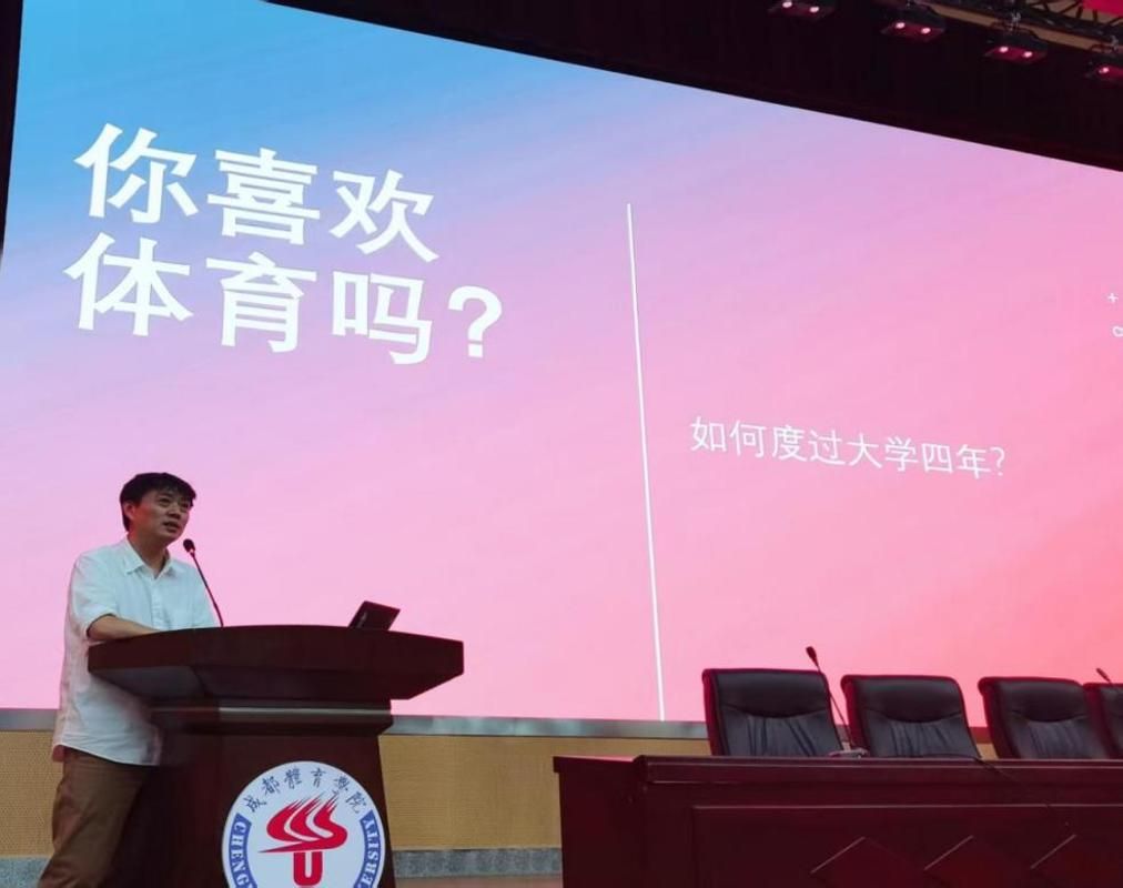 接着,长期深耕体育赛事一线的从业者谭中微博士介绍了国内体育竞赛表演业的发展前景,分享了他长期从事马拉松和路跑赛事运作管理的感悟,并结合自身的学习工作经验为2025级同学给出了未来四年的学习建议。