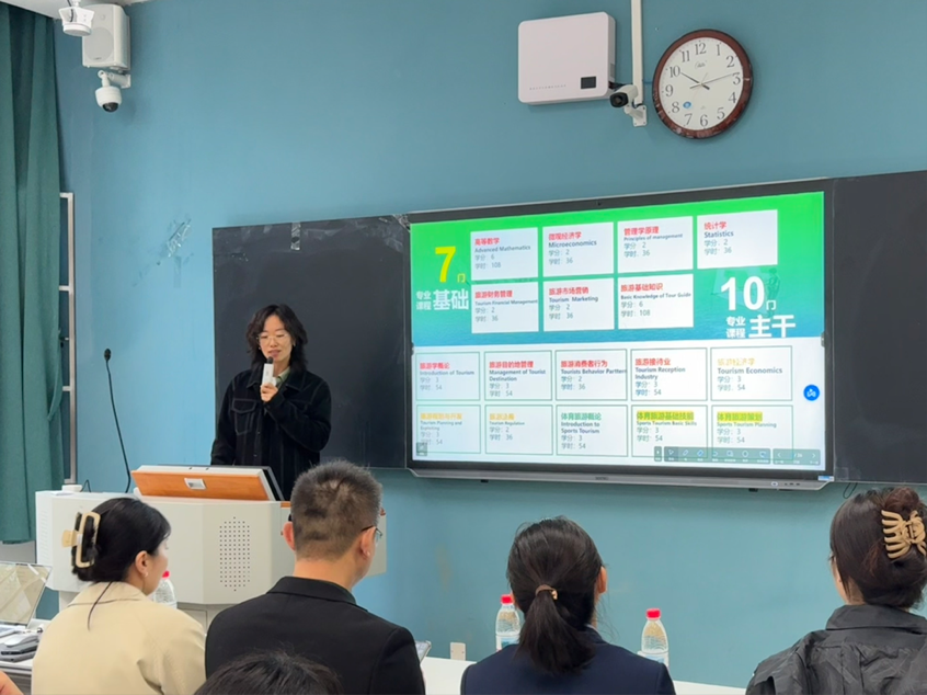 接着,胡洁老师系统介绍了旅游管理专业的课程体系与办学特色,重点讲解“理论+案例+实训”三位一体培养模式及校内外丰富实践教学资源,并通过播放历届学生在实习基地开展课程实践与专业实习的精彩集锦,让新生直观感受专业实践特色与培养成效。