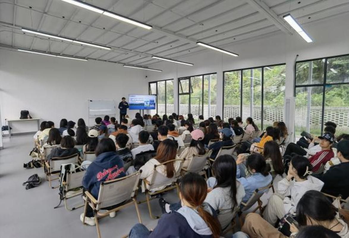 下午,在天府国际赛道,成都铭泰赛车体育公司开发部部长伍豫平、副部长刘坚、招商运营部经理黄航云、毕成等四位企业导师带领同学们在主看台现场观赛讲解“第六届天赋汽车场地精英赛”,随后分别带领两组学生参观赛事控制中心、媒体中心、赛车P房、颁奖台、改装车间及卡丁车场等功能区。在媒体中心,刘坚老师对天府国际赛道进行了详细介绍。