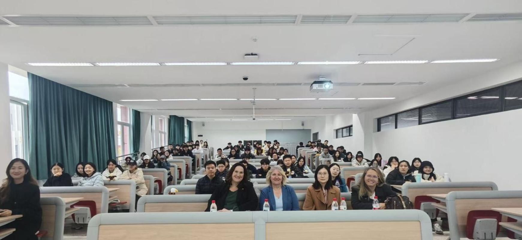 随后,在场师生们一同观看了南印第安纳大学的宣传片。2025级中外合作办学项目的新生们也与南印第安纳大学的老师们展开了热烈的交流互动。