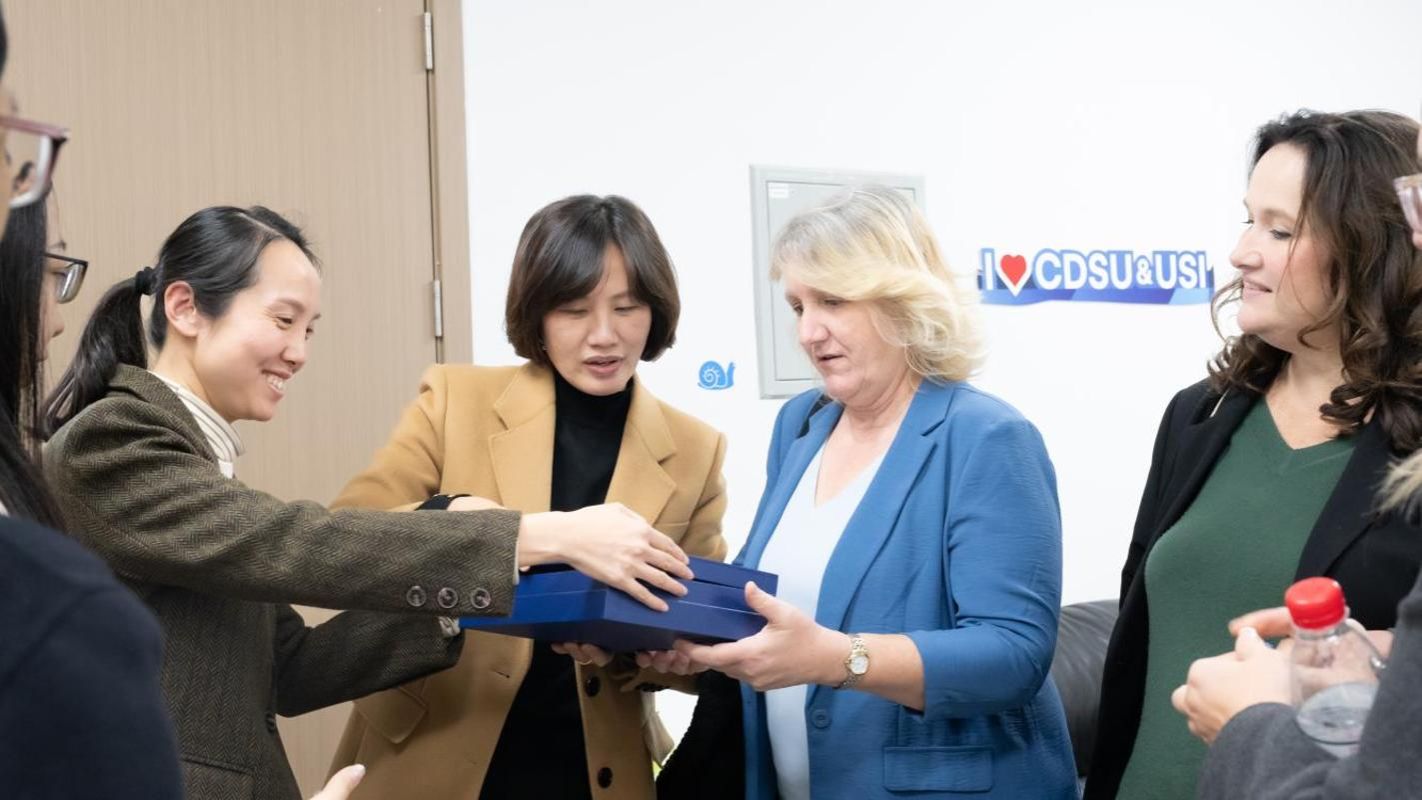 11月17日—18日,美国南印第安纳大学(University of Southern Indiana)教务长雪莉·布朗特(Shelly Blunt)、波特科学、工程和教育学院院长特蕾莎·比姆(Teresa Beam)、国际项目中心主任埃米·兹拉特科夫斯卡(Emi Zlatkovska)一行访问我校,就两校体育经济与管理中外合作办学项目开展深入交流。这是继2024年南印代表团访问我校、2025年上半年我校代表团赴美回访后,两校在合作办学框架下的又一次互动,进一步夯实了两校的合作基础,标志着两校交流合作已进入常态化的新阶段。访问期间,南印代表团参加了我校举行的体育经济与管理专业合作办学项目2025级新生开班仪式、答疑会及合作办学项目联合委员会会议,实地走访经济管理学院和学生活动中心等代表性地点,并成功签署“2+2”学分互认协议。