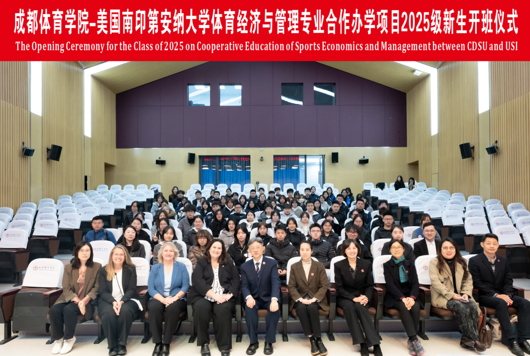 11月17日上午,成都体育学院与美国南印第安纳大学体育经济与管理专业合作办学项目2025级新生开班仪式在行健楼举行,美国南印第安纳大学教务长雪莉·布朗特、波特科学、工程和教育学院院长特蕾莎·比姆、国际项目中心主任埃米·兹拉特科夫斯卡,党委常委、副校长李林,经济管理学院院长郭新艳、党委书记张林玲、副院长卿平及合作办学项目相关人员出席开班仪式。