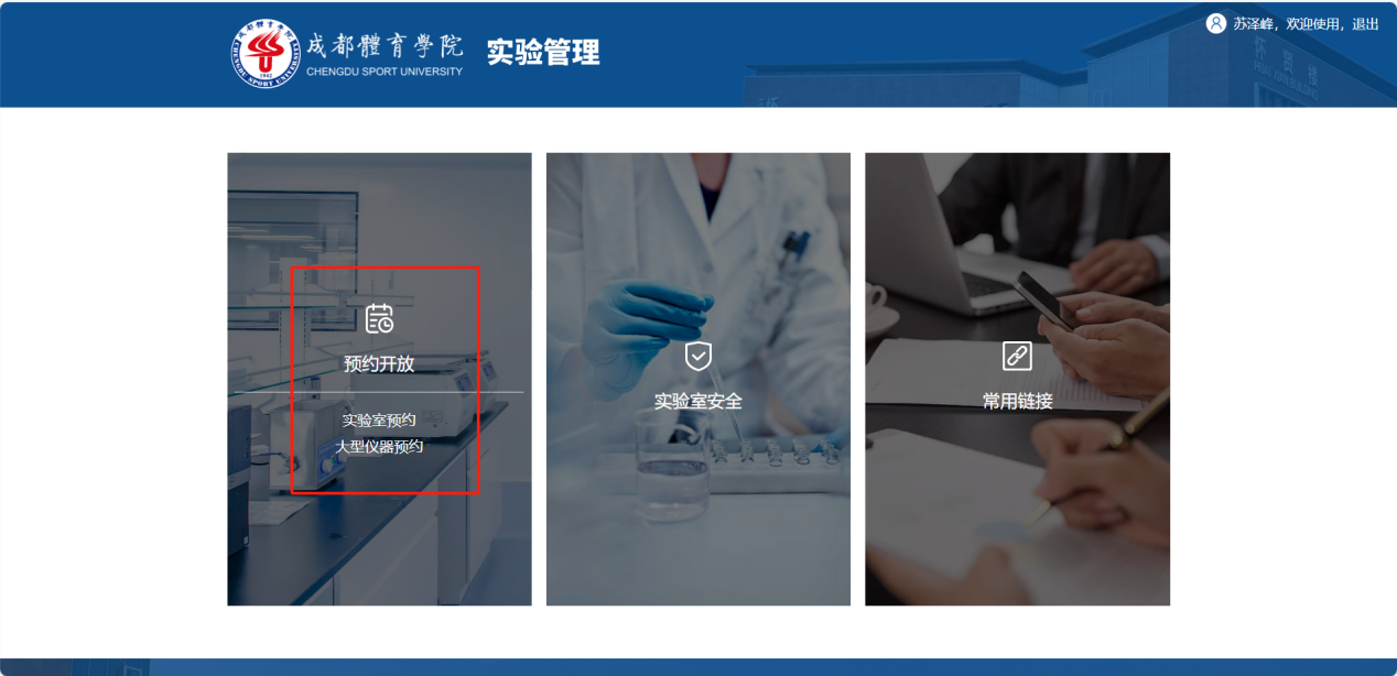 3. 进入后,鼠标移至预约开放模块,有实验室预约和大型仪器预约,如下图